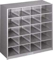 PRECISION PIGEON HOLE CABINET 40 COMPARTMENTS W1037 X D386 X H1825MM SILVER GREY
