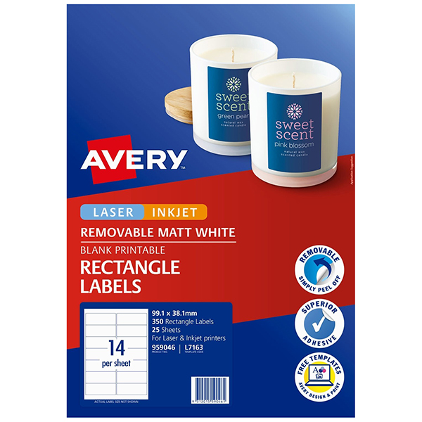 AVERY 959046 L7163 REMOVABLE LABEL LASER INKJET 14UP MATT WHITE PACK 25