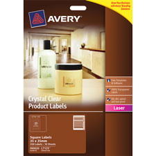AVERY 980021 L7126 SQUARE LABELS LASER 20UP CRYSTAL CLEAR PACK 10