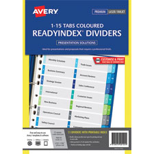 AVERY DIVIDERS MANILLA A4 1-15 TAB REINFORCED DOUBLE COLUMN COLOURED