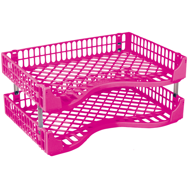 BIC DOCUMENT TRAY LANDSCAPE 395 X 260 X 60MM FLUORO PINK PACK 2