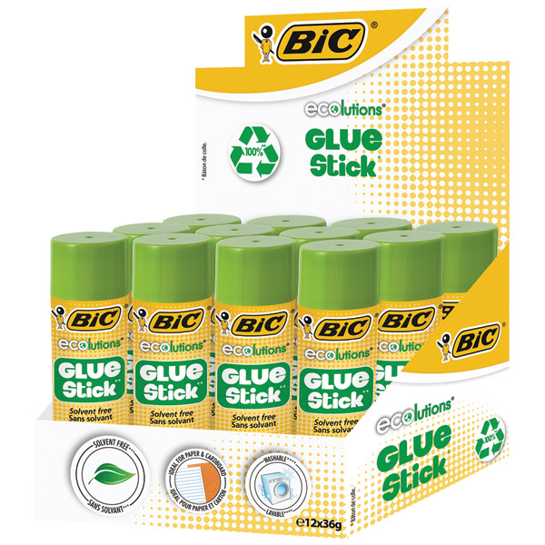 BIC Ecolutions 36g Glue Stick comes with solvent free glue and 100% recycled and recyclable plastic body.