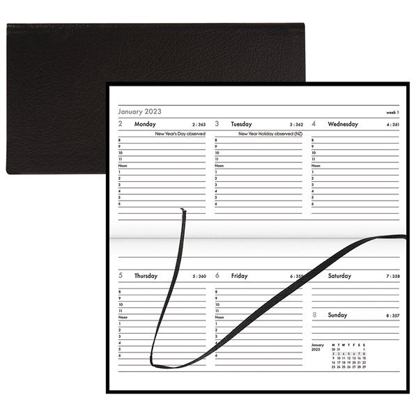 FSC 70% mix diary.Week to view70GSM paperPadded Italian PU coverStitched edgingSold singularlyW170 x L80mm