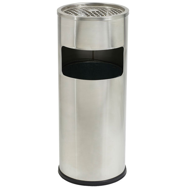 COMPASS STAINLESS STEEL LOBBY BIN WITH ASHTRAY 10L