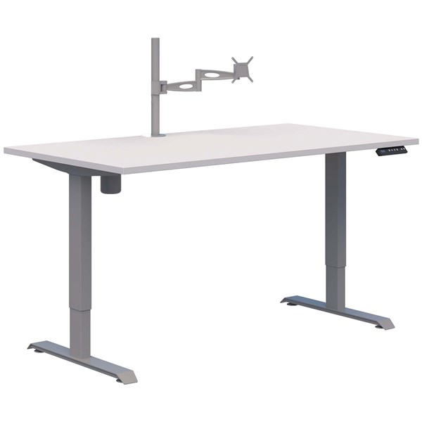 DUO II ELECTRIC DESK W1200 X D700 X H695-1145MM SILVER FRAME SNOWDRIFT WITH METALICON SINGLE MONITOR ARM SILVER