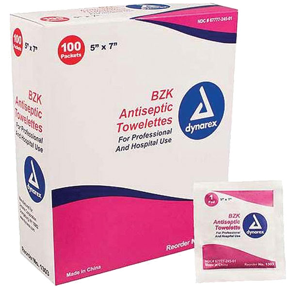 DYNAREX BZK ANTISEPTIC TOWELETTE SACHETS BOX 100