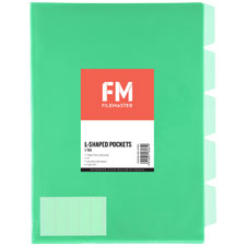 FM L-SHAPED POCKET 5 TAB A4 GREEN PACK 5