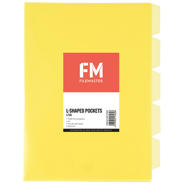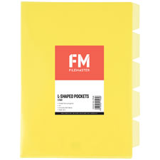 FM L-SHAPED POCKET 5 TAB A4 YELLOW PACK 5