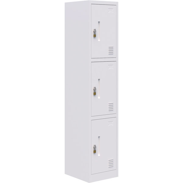FORTIS STORAGE LOCKER 3 DOOR LATCH LOCKING H1850 X L380 X D450MM WHITE