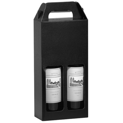 A gift box to fit two bottles of wine, with a window.