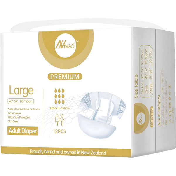 INGOCARE ALL-IN-ONE WRAPAROUND PREMIUM ADULT DIAPER LARGE PACK 12