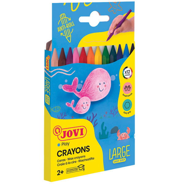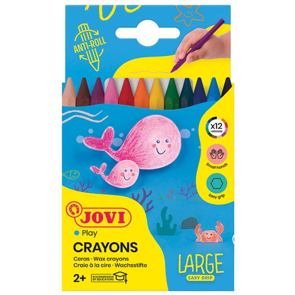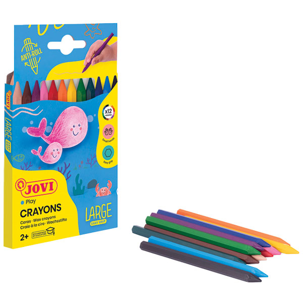 JOVI PLASTIC CRAYONS 12 ASSORTED BRIGHT COLOURS NO WHITE BOX 300