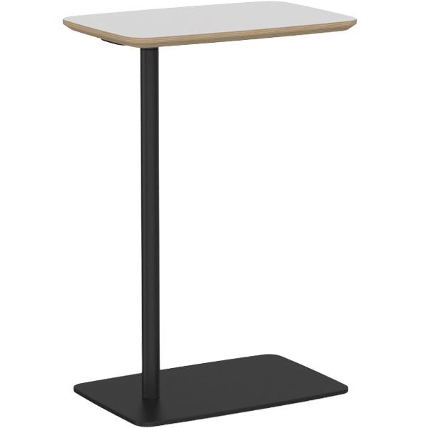 Cubit side table with a horizontal rotating 300mm x 450mm top and black powdercoat base with flat foot.