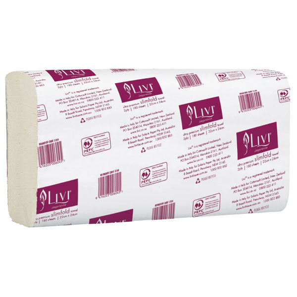 LIVI IMPRESSA SLIMFOLD PAPER TOWEL 2PLY 180 SHEET CARTON 16