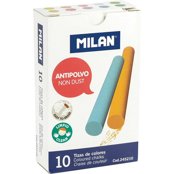 MILAN CHALK DUSTLESS COLOURED PACK 10