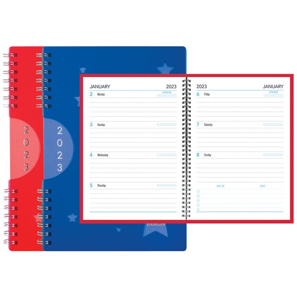 Week to view starburst diary.70GSM paperPolyprop coverWiroStar cut-outs on the frontSold singularlyW208 x L260mm
