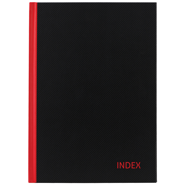 MILFORD HARD COVER NOTEBOOK INDEXED A4 100 LEAF RED AND BLACK