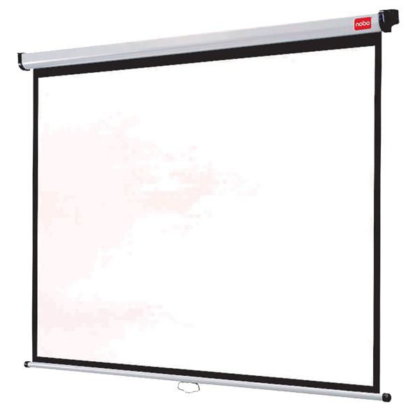 Nobo wall mounted projector screens have a brilliant matt white surface with a distinctive black border to provide a sharp, detailed image. Flexible for digital or overhead projection and for wall or ceiling mounting, the screen is neatly and easily retracted into its casing when not in use