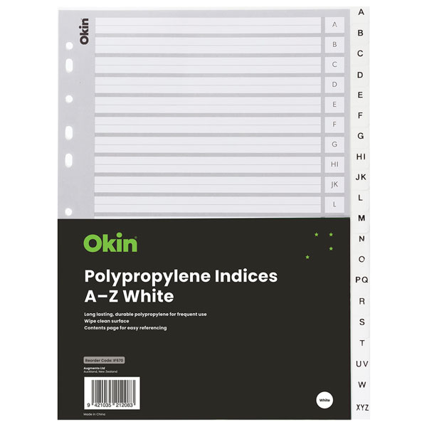 OKIN PP INDICES A-Z TABS A4 WHITE