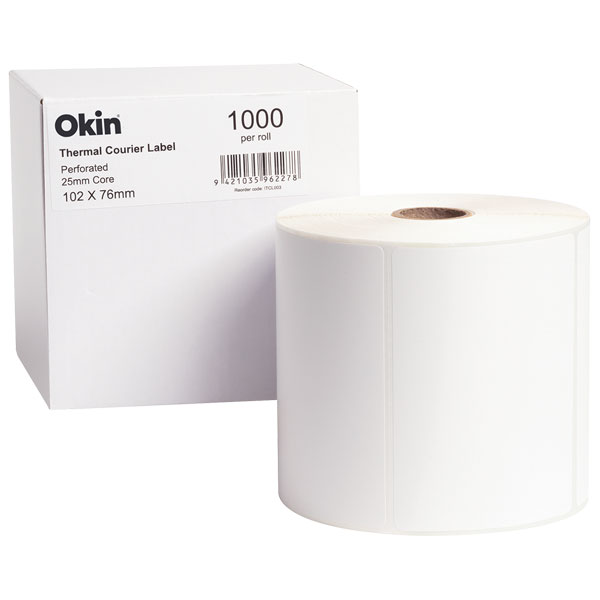 OKIN THERMAL COURIER LABEL PERFORATED 102X76MM 1000 LABELS