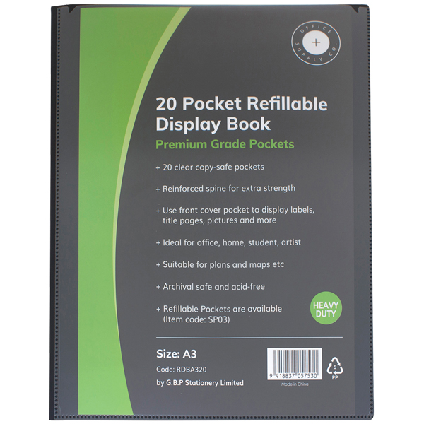 OSC REFILLABLE DISPLAY BOOK 20 POCKET A3 BLACK