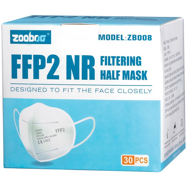 PARTICLE RESPIRATOR ZB008 FFP2 WHITE PACK 30