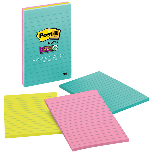 POST-IT 4645-3SSMIA SUPER STICKY LINED NOTES 100 X 148MM MIAMI PACK 3