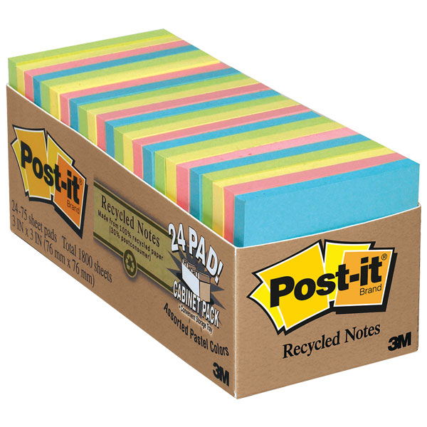 POST-IT 654R-24CP-AP 100% RECYCLED GREENER NOTES 76 X 76MM HELSINKI CABINET PACK 24