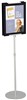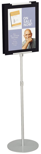 Quartet sign stand tranforms flyers into secure, sophisticated displays with a designer aluminum frame. Dual function frame conveniently adjusts to portrait or landscape orientationDurable sign stand holds 11 Inch W x 17 Inch H postersStands 59 Inch tall;ideal for high-traffic environmentsSilver;features a slim footprint and modern, upscale designOEM: QT7923