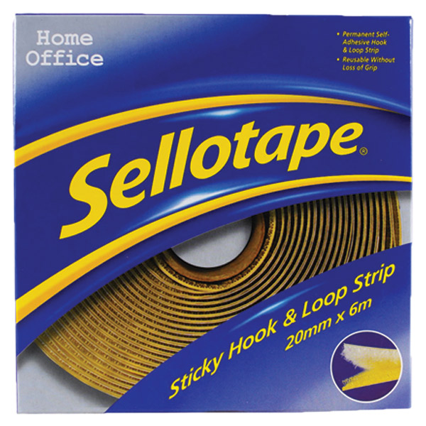SELLOTAPE STICKY HOOK AND LOOP STRIP REMOVABLE 20MM X 6M