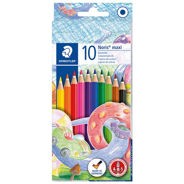 Staedtler Noris Club maxi learner coloured pencils 126ABS - the white protective coating reinforces the lead core and increases break-resistanceSpecially designed for small hands, ideal for first drawing and colouringBreak-resistant thanks to super-bonded leadEasy to sharpenConforms to EN 71