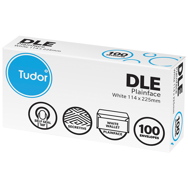TUDOR ENVELOPE PLAIN SELF SEAL DLE E20E W225 X L114MM WHITE BOX 100