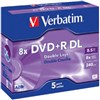 VERBATIM 43541 DVD+R DL 8.5GB 8X DUAL LAYER JEWEL CASE SILVER PACK 5